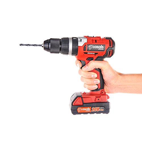 Funcional taladro percutor a batería de la gama profesional de Casals, óptimo para una perforación rápida, cómoda y eficaz; taladrarás a gran velocidad y además, percutirás a máxima precisión, todo tipo de materiales ladrillos, piedras, metal, hierro colado, aluminio; todas tus tareas de bricolaje son posibles gracias al taladro percutor con batería; consigue total libertad de movimientos, ligereza y comodidad; resultado limpio y sin esfuerzo
