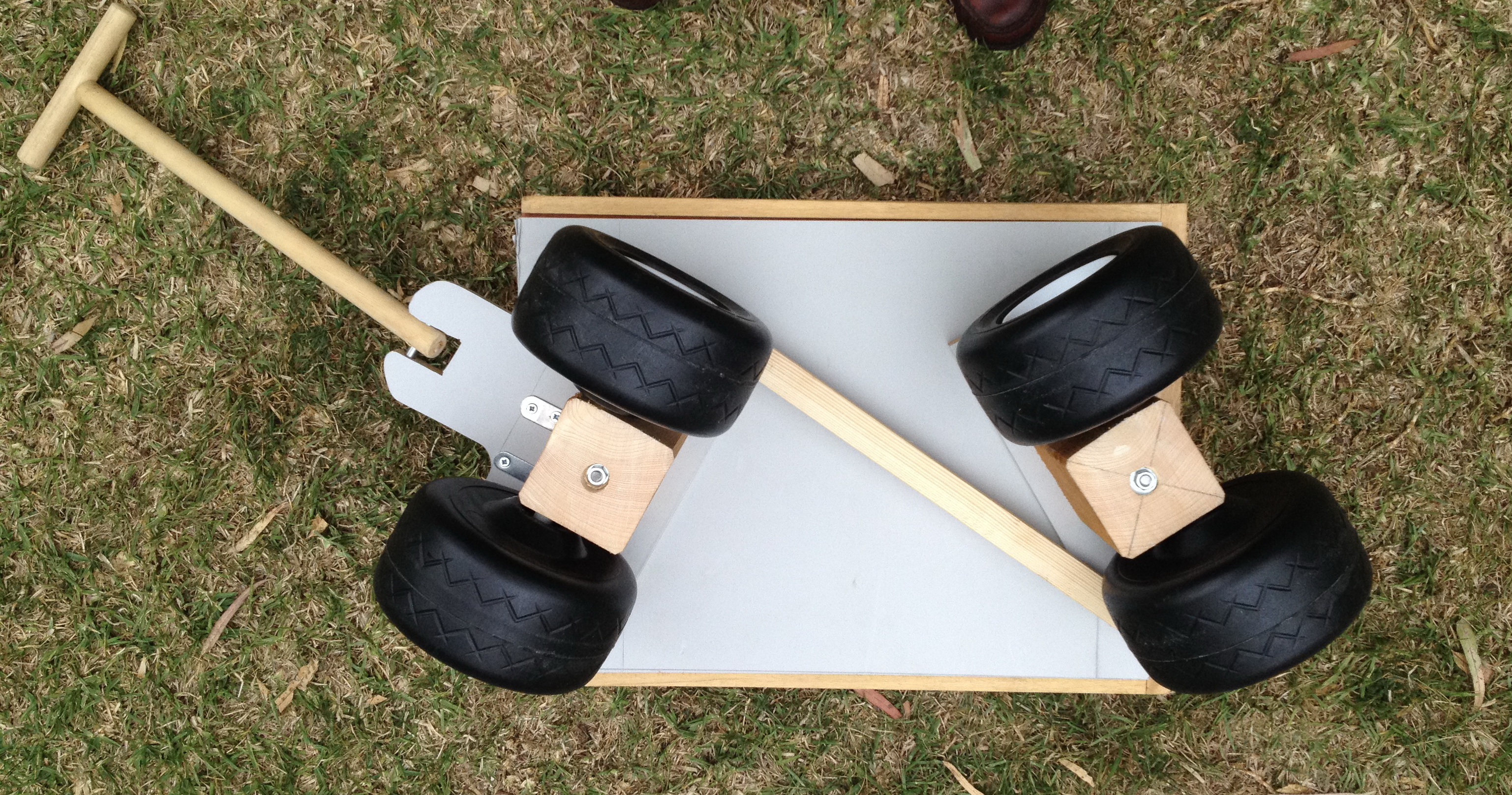 Instalar los ejes con las ruedas recicladas.